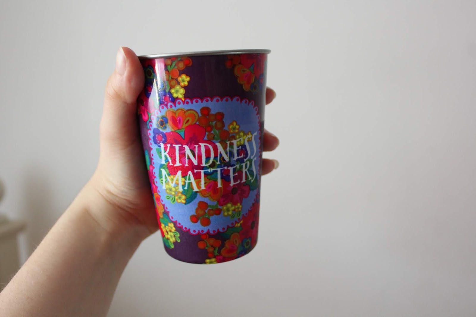 I love drinking water out of my stainless steel cup. It’s not only cute, but it’s also less likely to break if it falls. This is important because I tend to leave it on my bed frame a lot while I work (I don’t have an end table to put it on). Plus, I love the “kindness matters” text on the front.
