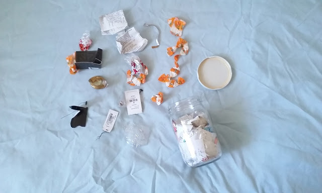 When I first started this journey, I did keep a trash jar in my room. It sat on top of my bookshelf, and occasionally, I’d add to it. Here and there I’d add a receipt, a cough drop wrapper, maybe some plastic film. Cool.