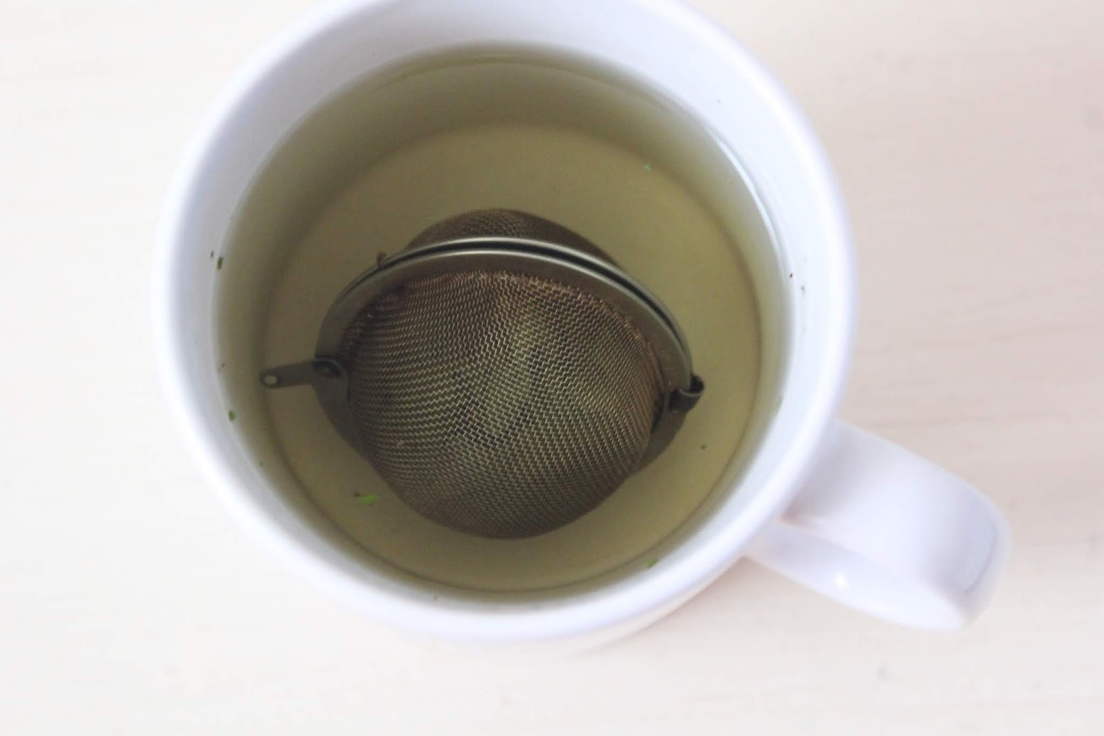 I add the dried leaves to my tea strainer ball, plop it into my favorite mug, and pour hot water over it. I let it steep for about 5 minutes, then drink up. Mint is great for promoting healthy digestion, and easing any stomach troubles (making it ideal to drink in the morning).